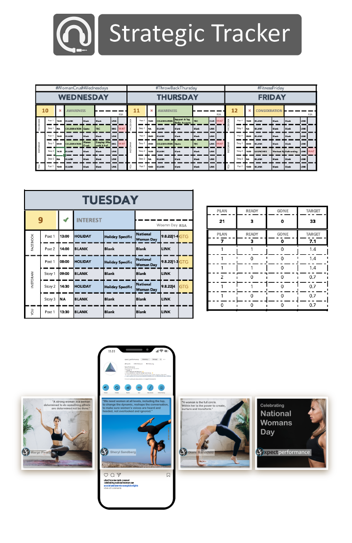 The Strategic Tracker facilitated discussions around content and copy creation, providing clear insights into performance and enabling timely adjustments for optimal engagement. By maintaining a cohesive brand narrative across all channels, Xpect Performance consistently drove traffic and strengthened their online presence in the competitive health, fitness, and golf market.